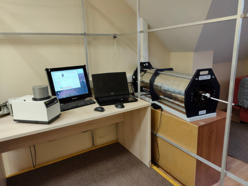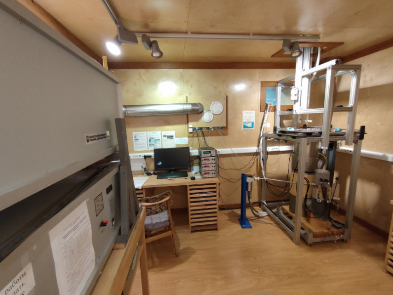 Криогенный (SQUID) магнитометр вертикальной ориентации с интегрированной установкой размагничивания/намагничивания образцов и роботизированной системой подачи образцов позволяет измерять остаточную намагниченность горных пород, минералов и искусственных материалов, чувствительность по магнитному моменту до 1E-12 А*м2 (по намагниченности для образца объемом 10 см3 – до 1E-7 А/м). Криогенный магнитометр установлен в немагнитной комнате производства Lodestar Magnetics, не имеющей аналогов в РФ.