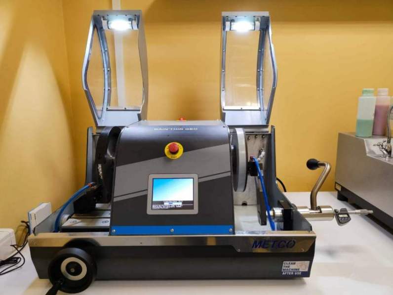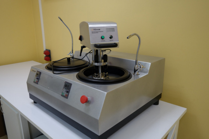 Двухдисковый автоматический шлифовально-полировальный станок используется в процессе пробоподготовки для микроскопических исследований (материаловедение и геология).