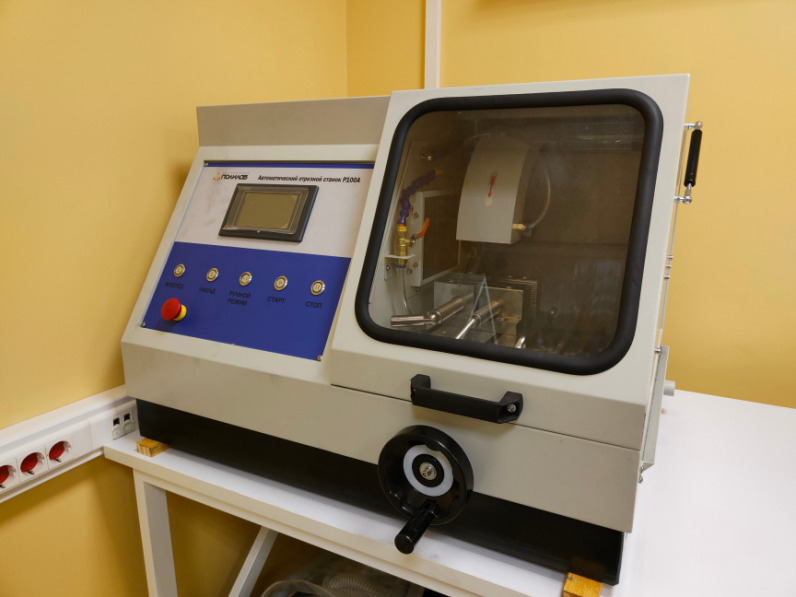 Автоматический отрезной станок используется в процессе пробоподготовки для микроскопических исследований (материаловедение и геология).